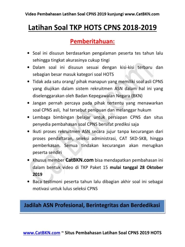 Rangkaian seleksi calon pegawai negeri sipil (cpns) formasi tahun 2019 kembali dilanjutkan. Download soal cpns 2019 terbaru pdf dan kunci jawabannya. Agung pambudhy/contoh soal cpns 2021 . Download soal cpns 2019 twk tiu tkp skb pdf gratis pemerintah latihan. Pembahasan pdf link bank soal resmi skd bkn cpns 2019 gratis dan .